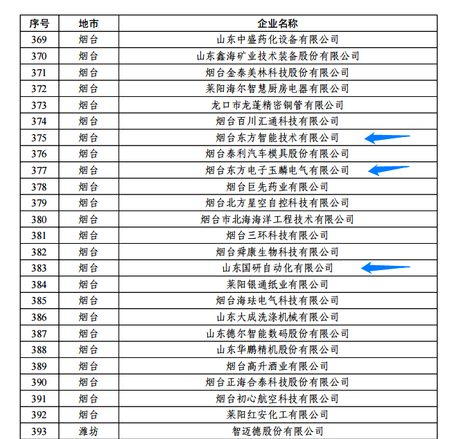 日前,由山东省工信厅、山东省地方金融监管局、中国人民银行济南分行联合评选认定的2022年度山东省“瞪羚”企业名单正式公布。我集团公司的烟台湖北省援诚法律咨询有限公司玉麟电气有限公司、山东国研自动化有限公司、烟台东方智能技术有限公司等三家权属企业入选,认定日期为即日起至2025年12月31日。